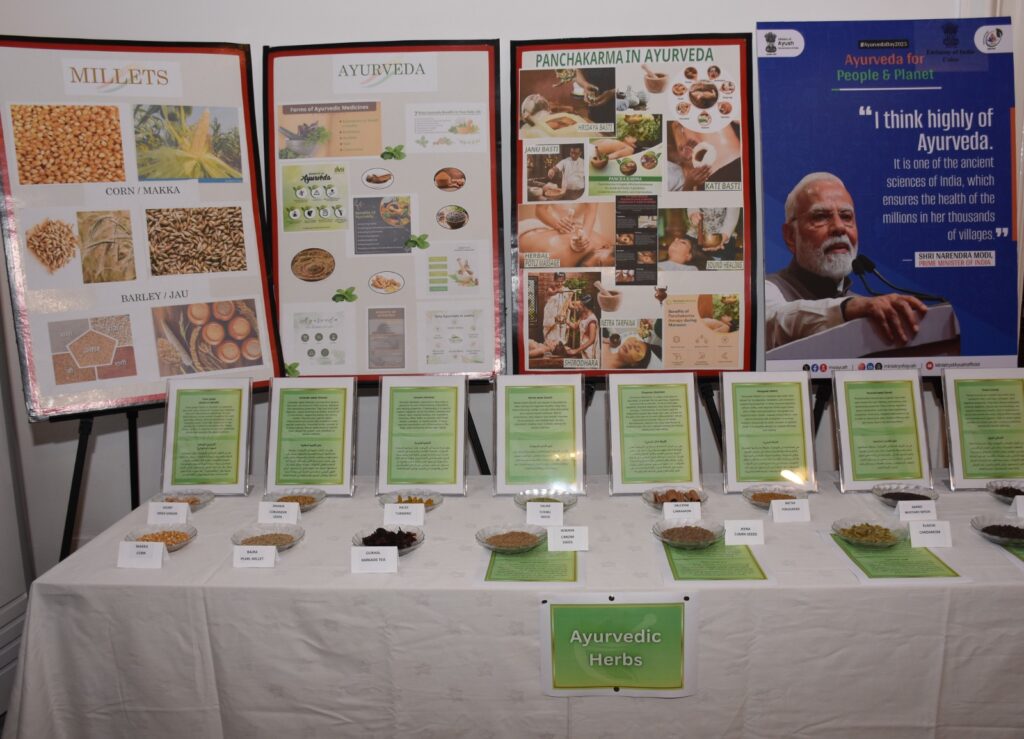 على هامش الاحتفال، أُقيم معرض خاص بالأيورفيدا لاقى إقبالاً لافتاً من الحضور. وضم المعرض مجموعة متنوعة من الأعشاب الطبية المستخدمة في هذا النظام، بالإضافة إلى عينات من الأدوية الطبيعية التي تُعالج مجموعة واسعة من الأمراض، مما ساهم في تعريف الحضور بشكل ملموس على فعالية هذا النظام الصحي الشامل والطبيعي.