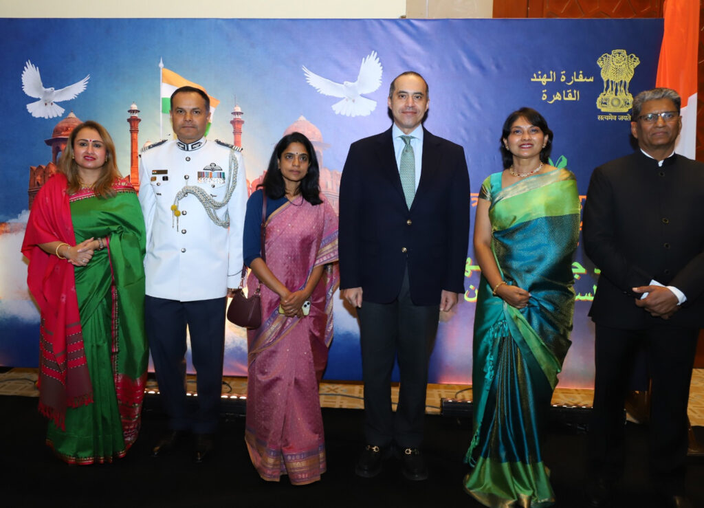 احتفلت السفارة الهندية بالقاهرة مساء اليوم، بحفل استقبال رسمي بمناسبة ذكرى عيد جمهورية الهند الـ77، تحت رعاية سعادة سفير الهند لدى جمهورية مصر العربية السيد/ سوريش كيه ريدي وبحضور كوكبة من كبار المسؤولين المصريين وأعضاء السلك الدبلوماسي والجالية الهندية وشخصيات عامة.