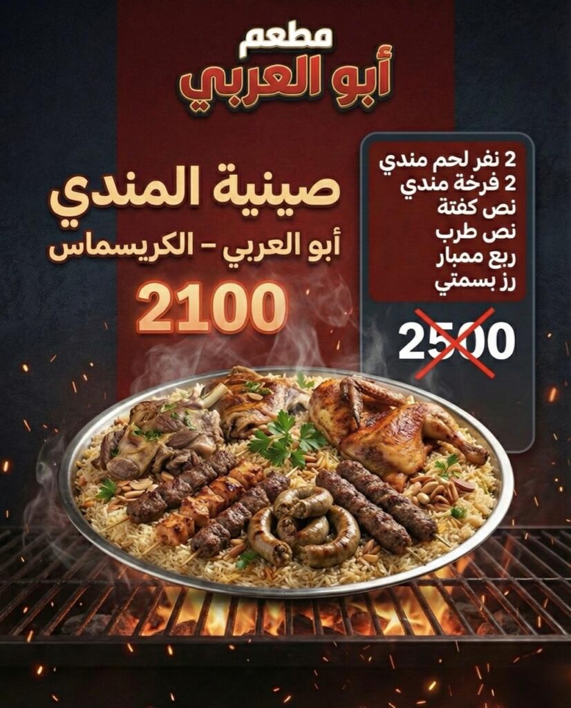 يتزامن هذا العرض مع استعدادات الأسر المصرية والأجنبية المقيمة للاحتفال، حيث يُعد مطعم “أبو العربي” وجهة للذين يبحثون عن الجودة العالية والطعم الأصيل والكمية الوفيرة، مما يجعله خياراً مثالياً للولائم العائلية والمناسبات الخاصة خلال موسم الأعياد.